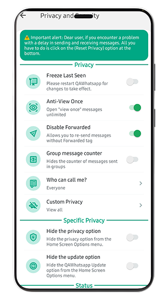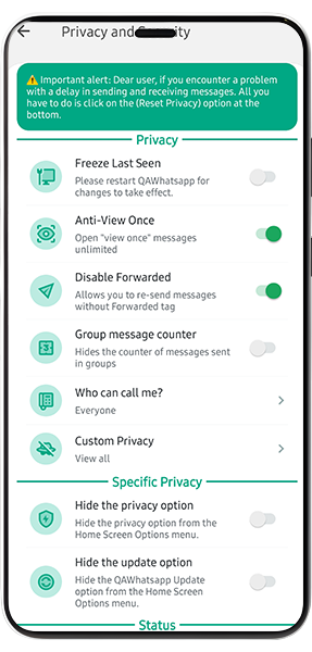 Rest assured that your chats and data are fully encrypted and protected from the moment you start using QAWhatsApp. Privacy, security, and user control are our top priorities, ensuring you always feel safe and confident while messaging. With seamless updates, powerful features, and dedicated support, QAWhatsApp puts you in complete control of your chatting experience.